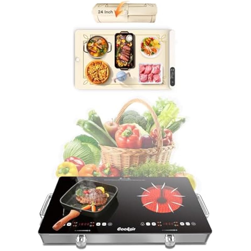 - Cooksir Electric Food Warming Mat and 2 Burner Electric Cooktop