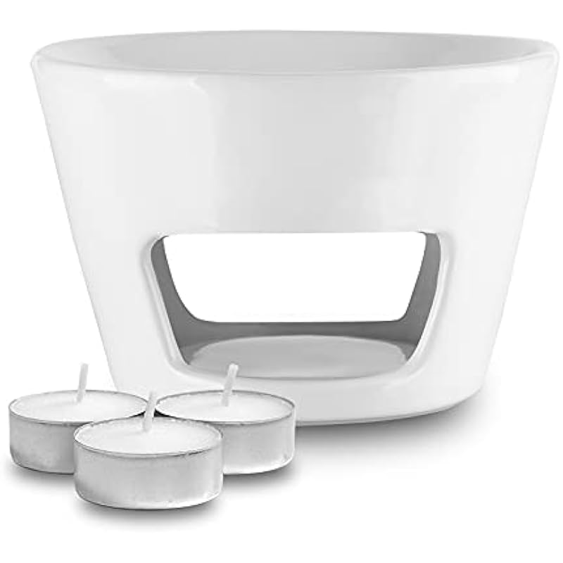 Essential Oil Burner – White Aroma Lamp – Ceramic Burners – Spa – Yoga – Aromatherapy – Decorative Candlesticks – Diffuser Essential Oils – Ø 15 cm Height 10 cm – 3 Free Candles
