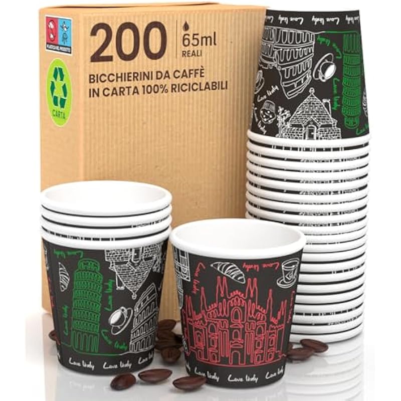 Eurocali 200 Paper Cups for Espresso Coffee Small Size 65ml Design BrownCUP – Disposable to Go Biodegradable Ecological for Hot Drinks
