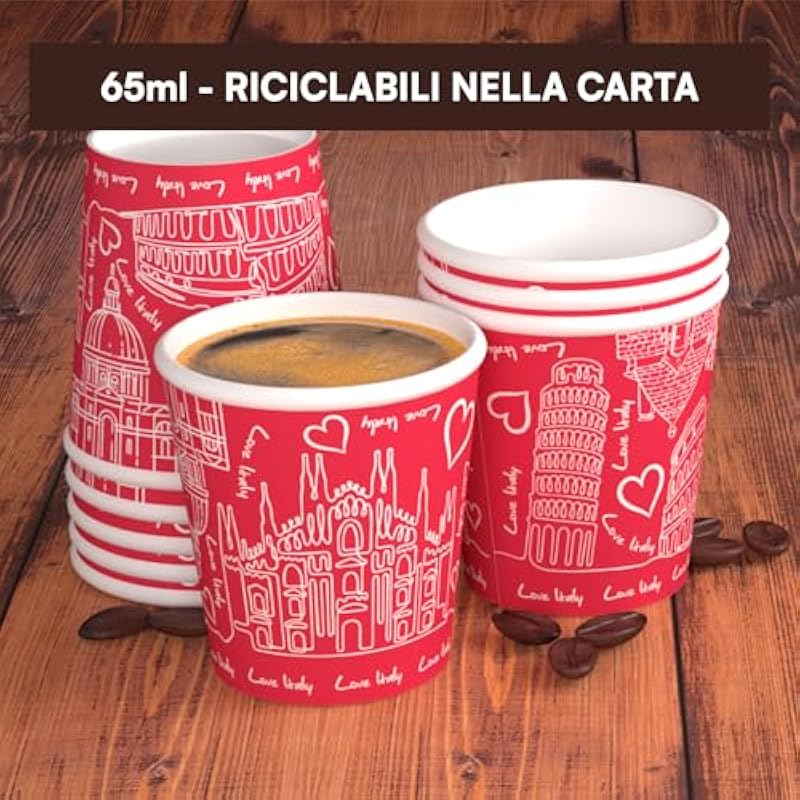 Eurocali 200 Paper Cups for Espresso Coffee Small Size 65ml Design BrownCUP – Disposable to Go Biodegradable Ecological for Hot Drinks