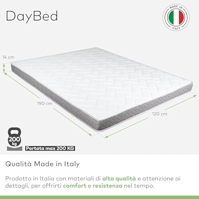 EVERGREENWEB – Click Clack Mattress 120 x 190 cm H 10 for Sofa Bed with Memory Foam, Foldable, Fold in the Seat, Orthopedic, Hypoallergenic, Fixing Cords Bed Sofa Memory