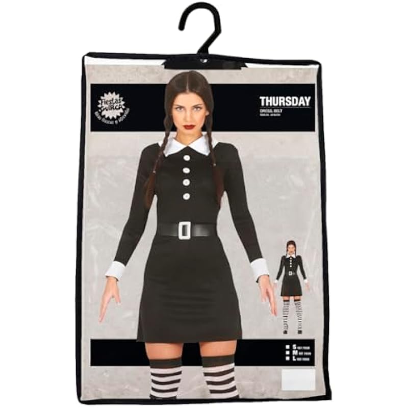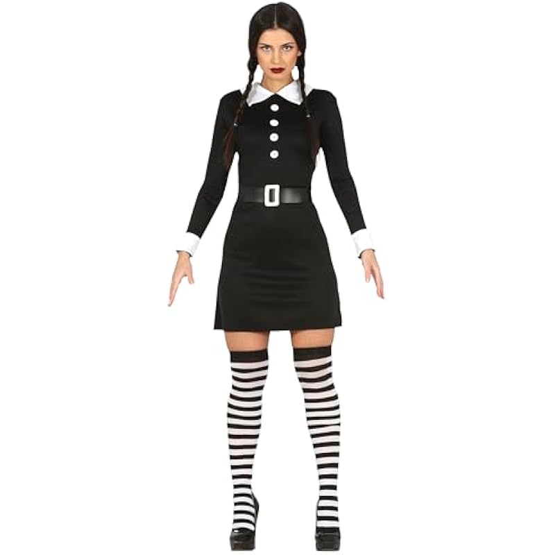 FIESTAS GUIRCA | Gothic Girl Adult Costume – Dress and Belt for Women – Student and Schoolgirl Costumes for Halloween, Carnival, Movie Parties and Series – Ideal for Adults