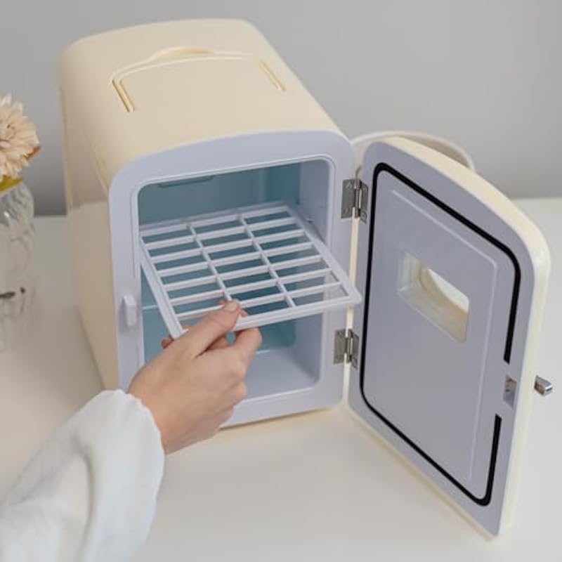 Flamingueo Mini Fridge, 4 Litres, 12V/220V, for Room, Cosmetics, Drinks, Cold and Heat Function, Removable Shelf [Energy Class D]