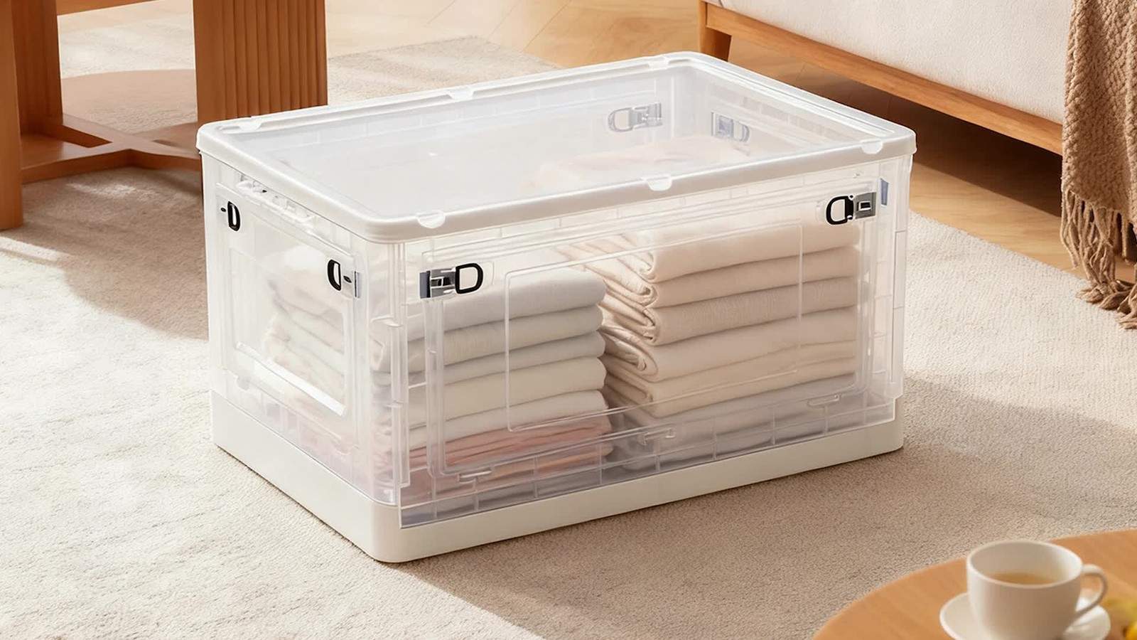Foldable Storage Bins with Lids Clear Plastic Storage Box for Closet Organizer