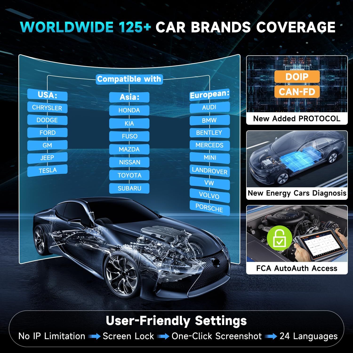 ABS, DPF, EPB, SAS, SRS, TPMS, Injector coding, CVT, Gear Learning, TPS/TPA, Battery Configuration,, ALL Systems Diagnosis, 30+ special Functions, Bi-directional Control, ECU Coding, K~Y Pro-gramming, Transmission, Oil Service,etc