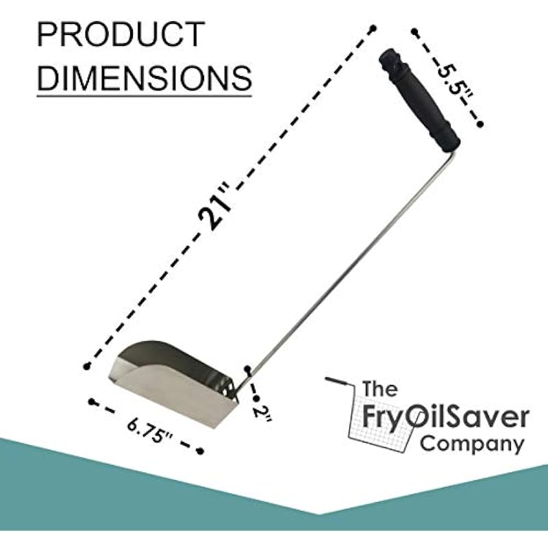 - HEAVY-DUTY STAINLESS STEEL FRYER CRUMB SCOOP FOR CLEANER OIL – Maintain optimal fryer performance with this premium stainless steel crumb scoop by FryOilSaver Co., designed for efficient debris removal from the cold zone. Measuring 2″ x 6″ x 2″, it features built-in drain holes that allow oil to flow through while capturing sediment, crumbs, and food particles—helping extend the life of your cooking oil. The extra-long 21.75″ handle ensures safe, easy access between fryer tubes.