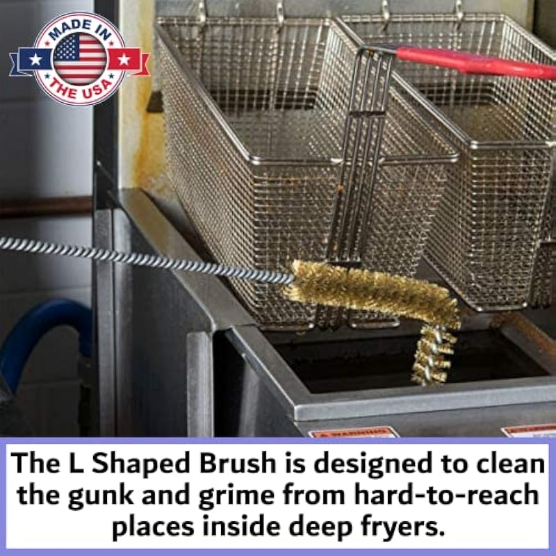 - HIGH-TEMPERATURE L-SHAPED FRYER CLEANING BRUSH FOR TOUGH GREASE REMOVAL – Designed to withstand heat up to 500°F, this heavy-duty deep fryer brush allows you to clean while equipment is still hot—saving time in busy kitchens. Its unique L-shaped design makes it easy to scrub hard-to-reach areas, including corners, under heating elements, and around fryer baskets. Built for performance and durability, this high-temperature bristle brush is perfect for deep fryers, burner tubes.