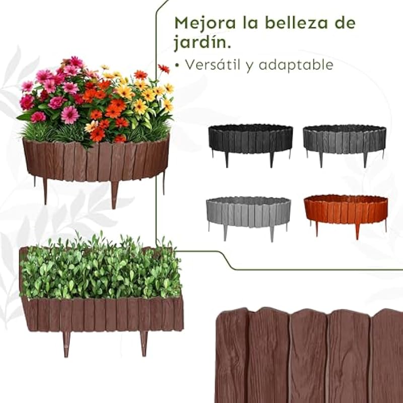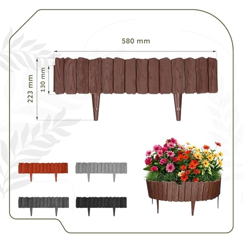 GARDENIX 2.3m Wood Look Lawn Edging Garden Edging (Brown)