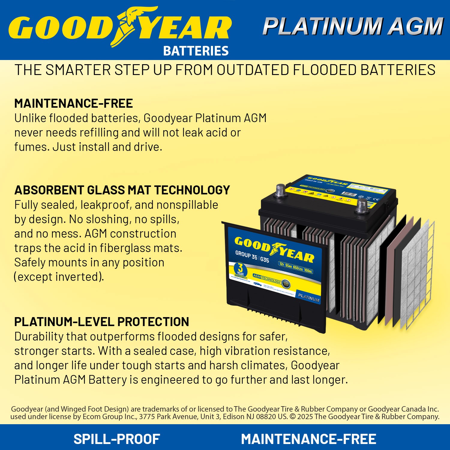 Goodyear Group 35 12V 55 AH, 100RC, 650 CCA Platinum AGM Automotive Battery