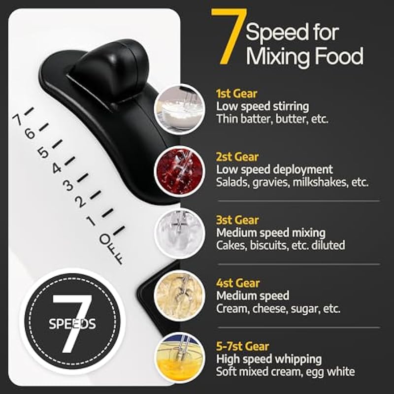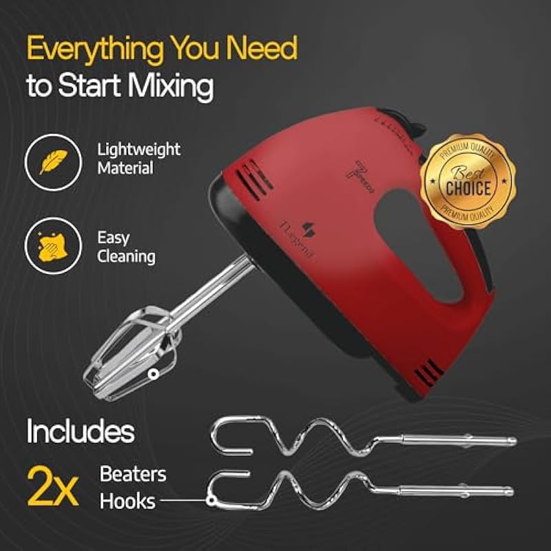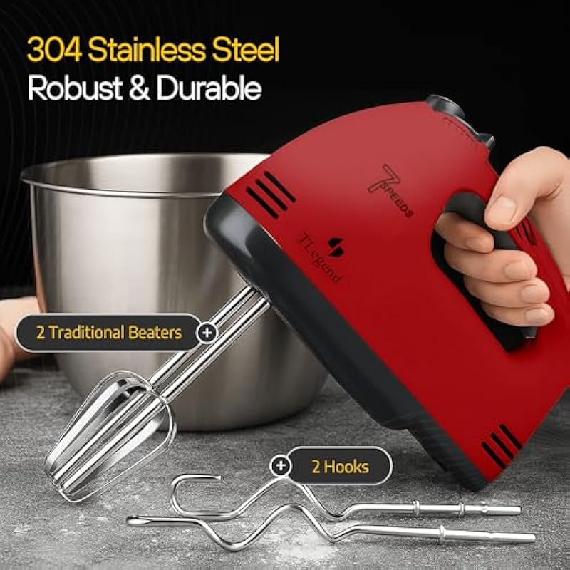 - 7 Adjustable Speed Settings for Versatile Mixing: With 7 speed settings, TechnoLegend hand mixer electric handheld gives you the flexibility to tackle any mixing task with precision. Whether you’re slowly folding in dry ingredients or whipping up a fluffy cake batter, you can easily adjust the speed to suit your needs. The low speeds allow for careful ingredient incorporation, while the higher speeds provide powerful performance for thicker batters or doughs.