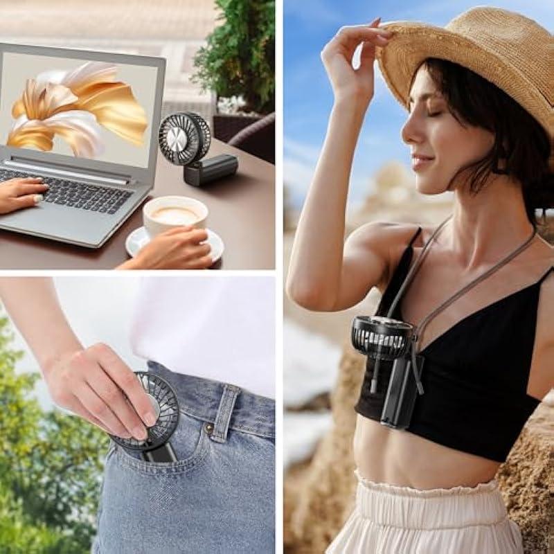 Neck Fan, Neck Fan, Portable Fan, Neck Fan, Cooling Plate, Semiconductor Cooling, Air Conditioner, Lightweight, Quiet, LED Included, Temperature Display, Type-C Rechargeable, 10,000 mAh