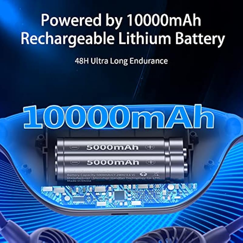 Neck Fan, Neck Fan, Portable Fan, Neck Fan, Cooling Plate, Semiconductor Cooling, Air Conditioner, Lightweight, Quiet, LED Included, Temperature Display, Type-C Rechargeable, 10,000 mAh
