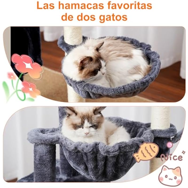 Heybly Cat Scratching Tree 100 cm High with Large Platform, Cave, 2 Hammocks, Toys and Tree for Climbing with Scratcher, Beige HCT006SM