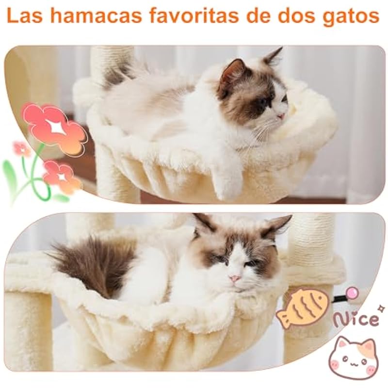 - 2 HAMMOCK: Cat tree has specially made two cat hammocks lying at different heights, making them ideal for homes with multiple cats! The cat tree is easy to install