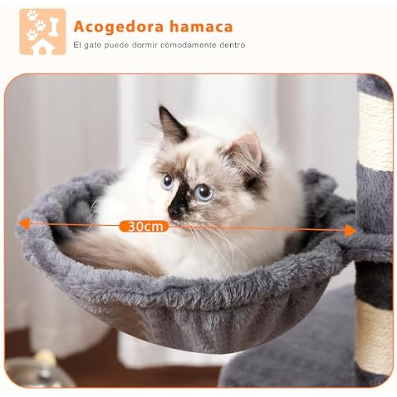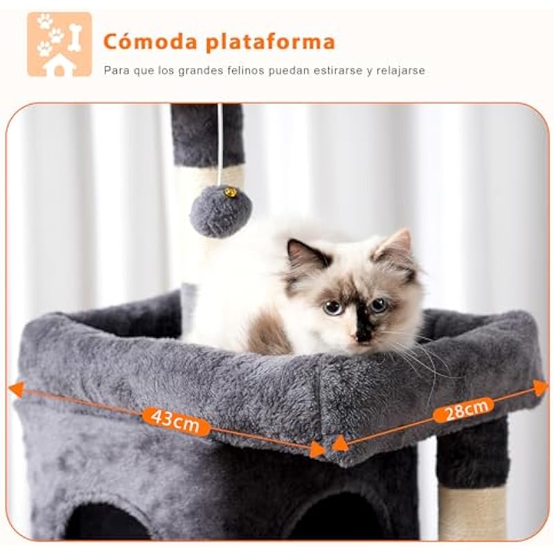 - Stable structure: The wide base platform is very stable, as a solid protector, which takes care of every moment of play of your cat and ensures a safe experience even during games or freejumps.