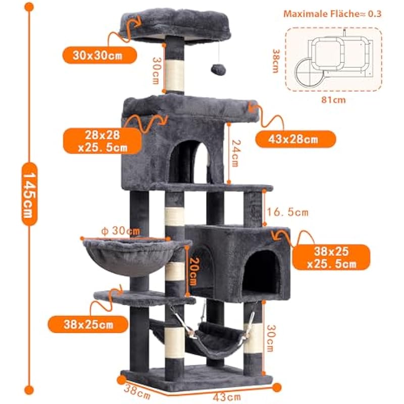 Be the first to review “Heybly Cat Tree, Climbing Tower with Scratching Post for Cats, 145 cm High, Features Two Large Platforms, a Wide Hammock and a Cat Basket, Light Grey HCT16G” Cancel reply
