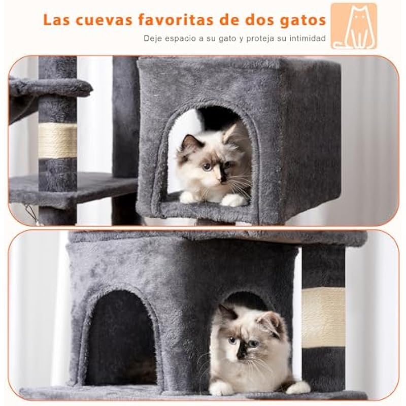 - 【TWO LARGE PLATFORMS】 There are two large ultra-soft platforms, which fit sweet beds and allow cats to stretch and sleep comfortably.