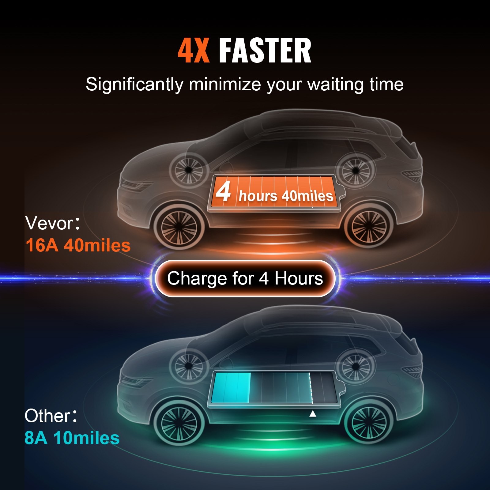 HOT/ Level 1+2 Portable EV Charger,16 Amp 120V or 240V,Electric Vehicle Charger