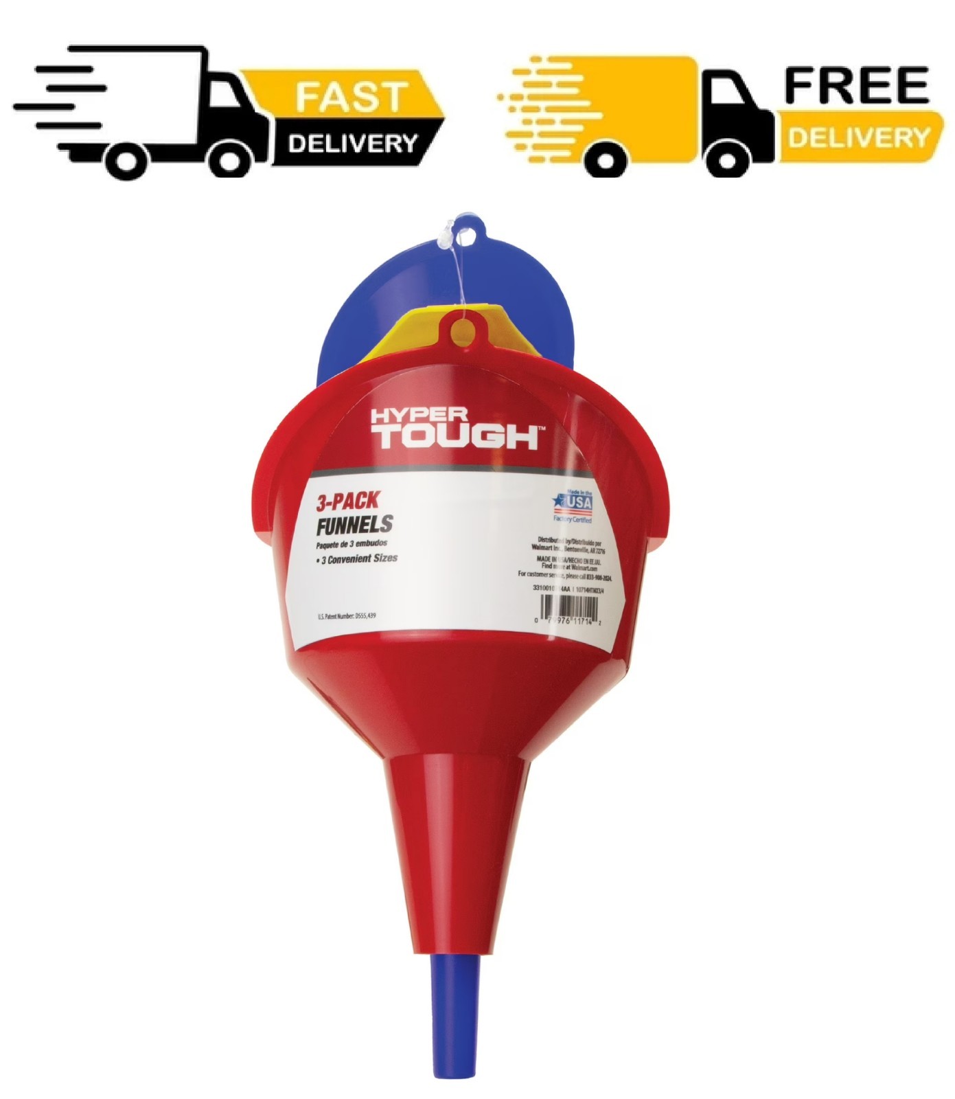 Hyper Tough Super Funnel Trio, Multi Purpose Plastic Automotive Funnel Set, 3 Pi
