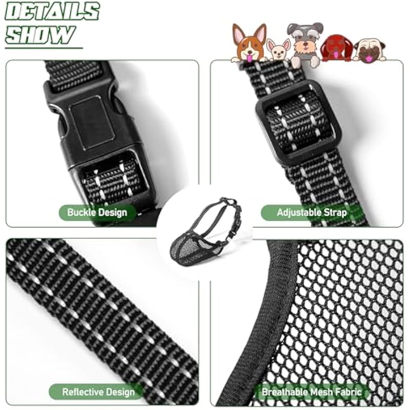 - Reflective Head Strap: The muzzle is equipped with a reflective head strap that increases visibility during walks and training, ensuring the safety of the pet. Besides, it effectively prevents dogs from taking it off with their paws.