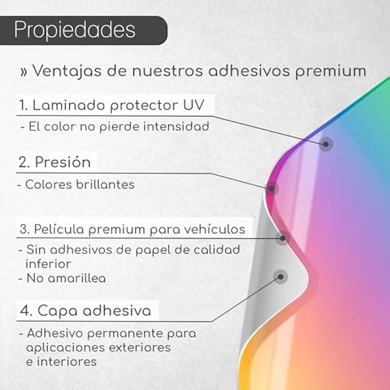 - High quality digital print on permanently adhering self-adhesive foil, coated with glossy UV protective laminate.