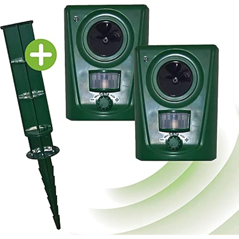 ISOTRONIC Ahuyentaodr Ultrasonic Animal Repeller for Dogs, Cats, Martens, Raccoons and Birds | Acoustic Animal Repellent for Garden, Balcony, Orchard, Barn | Set of 2