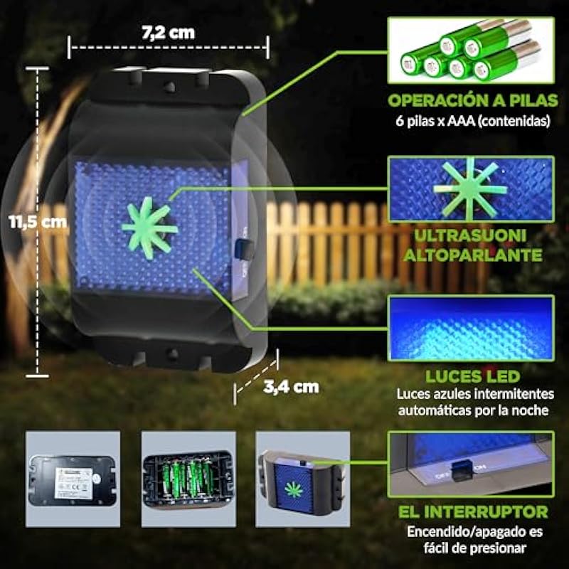 ISOTRONIC Battery Operated Rodent Repeller | Against Mice, Rats, Martens, Lyons, Raccoons & Foxes | Soft Wild Animal Repellent with Ultrasonic Waves and Blue LED Light (3)