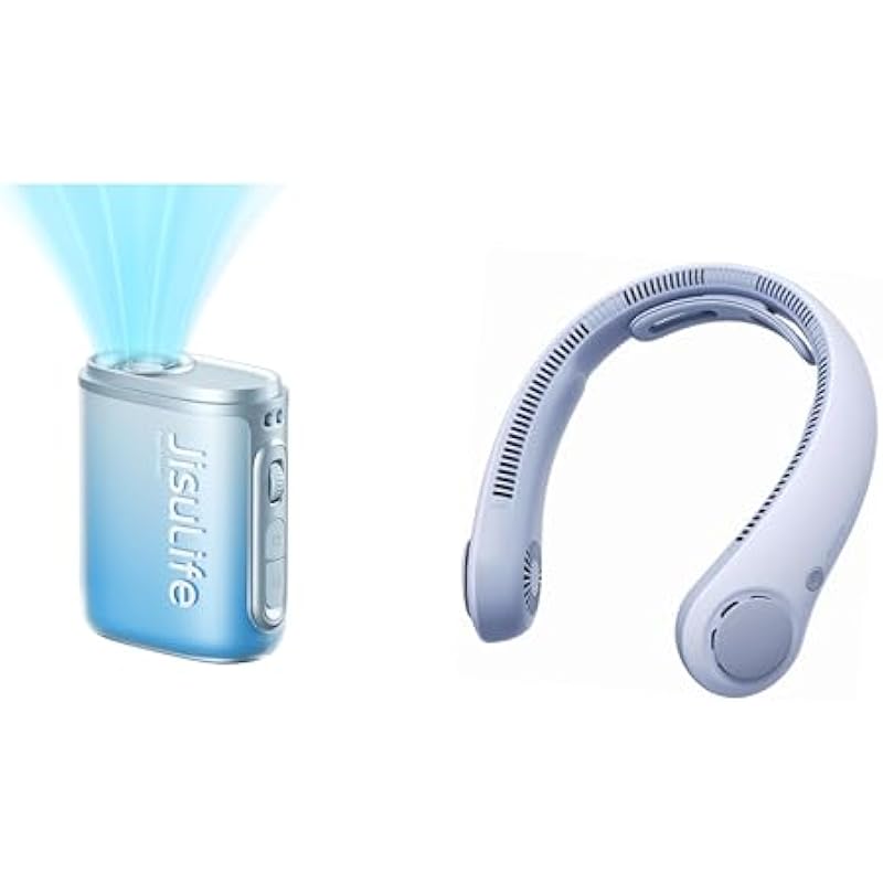 Socool Belt Fan, 4 Levels Adjustable, 13,000 RPM, Super Strong Wind, Up to 25 Hours of Continuous Blowing, 4 in 1 (Stool, Neck Hang, Tabletop, Handheld), LED Remaining Indicator & Japanese Instruction