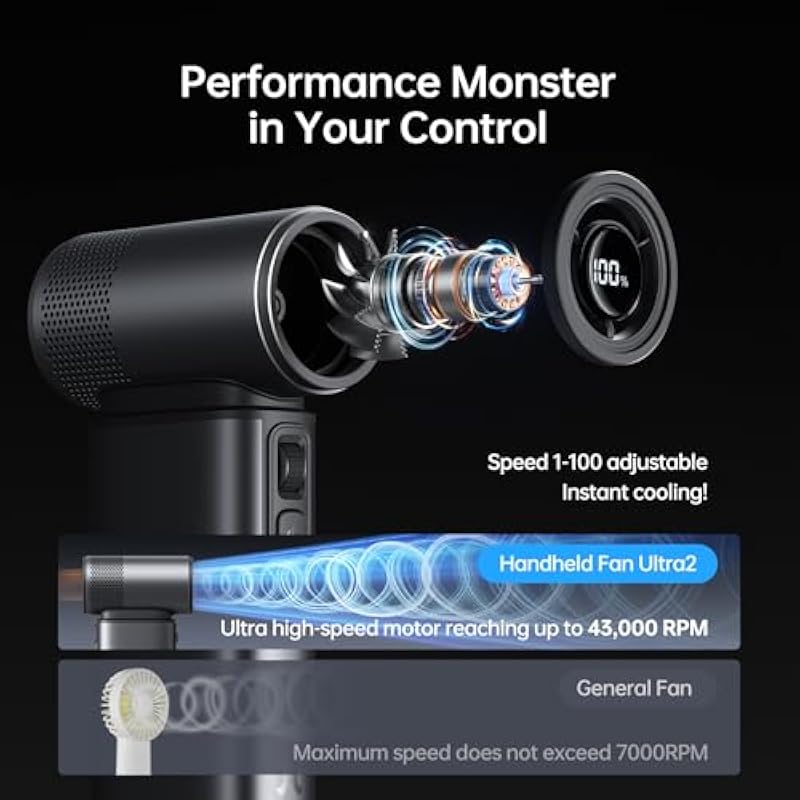 Socool Belt Fan, 4 Levels Adjustable, 13,000 RPM, Super Strong Wind, Up to 25 Hours of Continuous Blowing, 4 in 1 (Stool, Neck Hang, Tabletop, Handheld), LED Remaining Indicator & Japanese Instruction