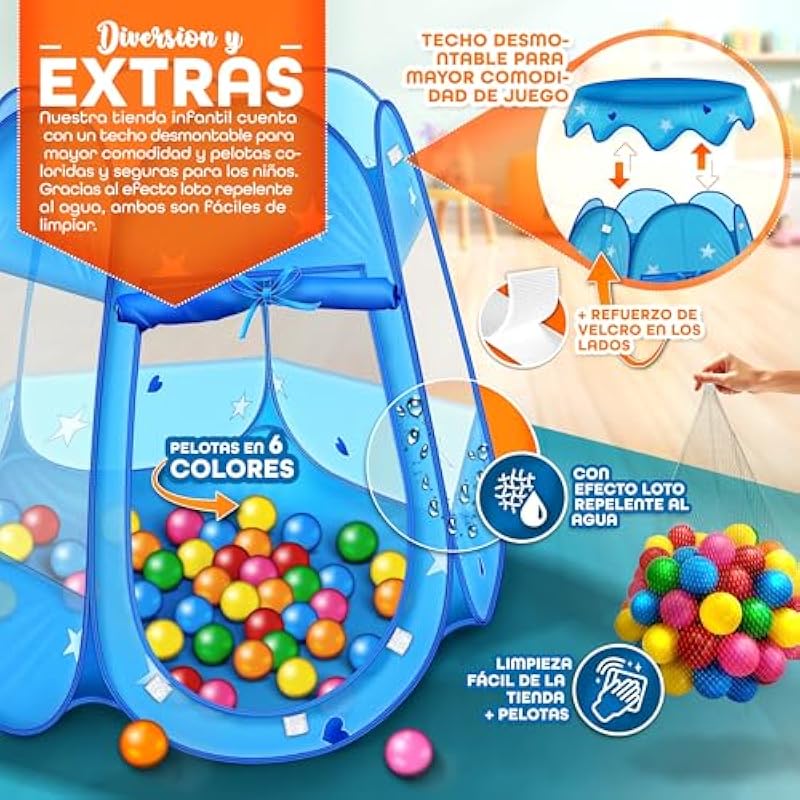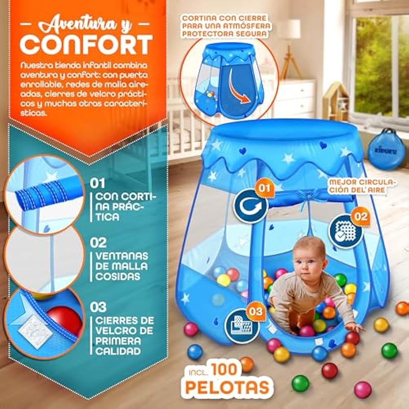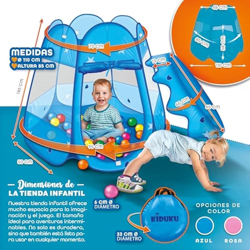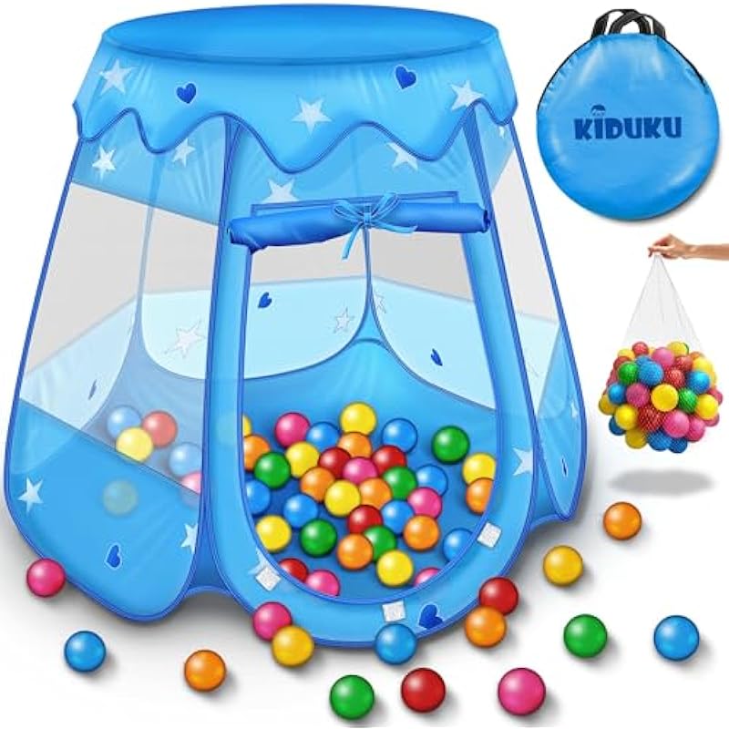 KIDUKU® Children’s Play Tent + 100 Balls + Fabric House Bag for Playing Ball Pool Castle for Indoor and Outdoor (Blue)