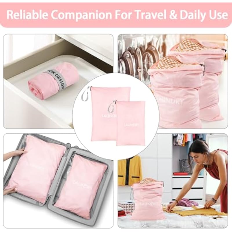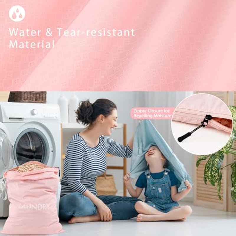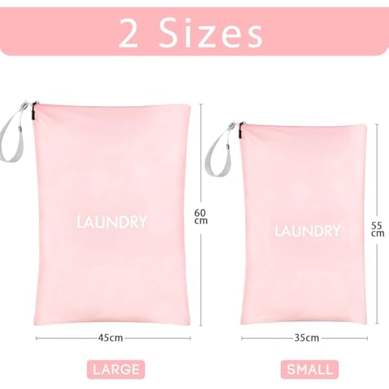 Laundry Bags, Waterproof Nylon Bag Dirty Clothes, 2Pcs Wet Dry Bag with Zipper for Travel, Fitness or Swimming