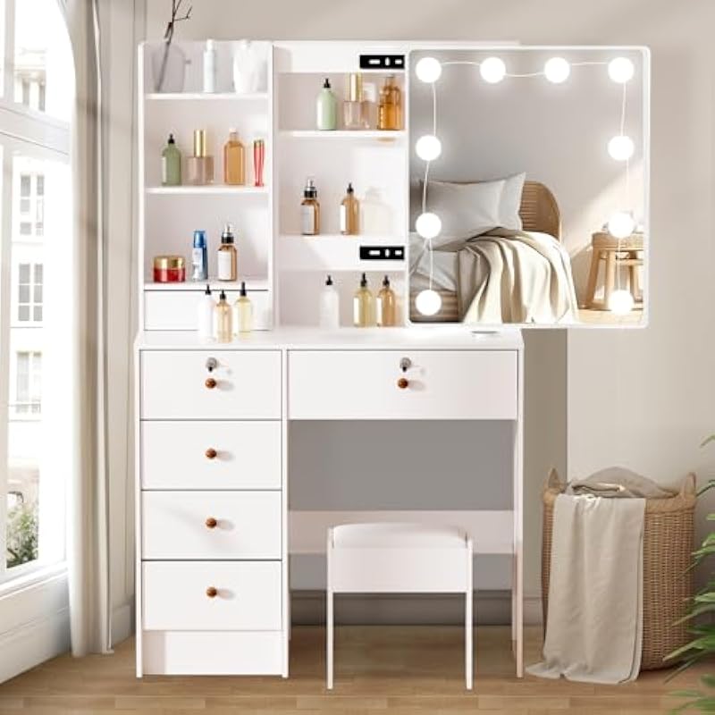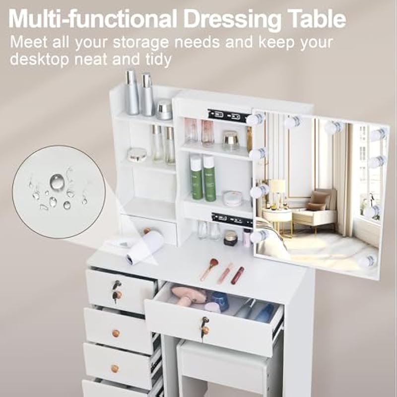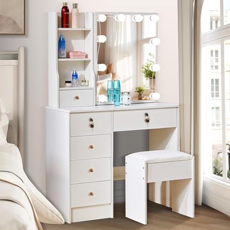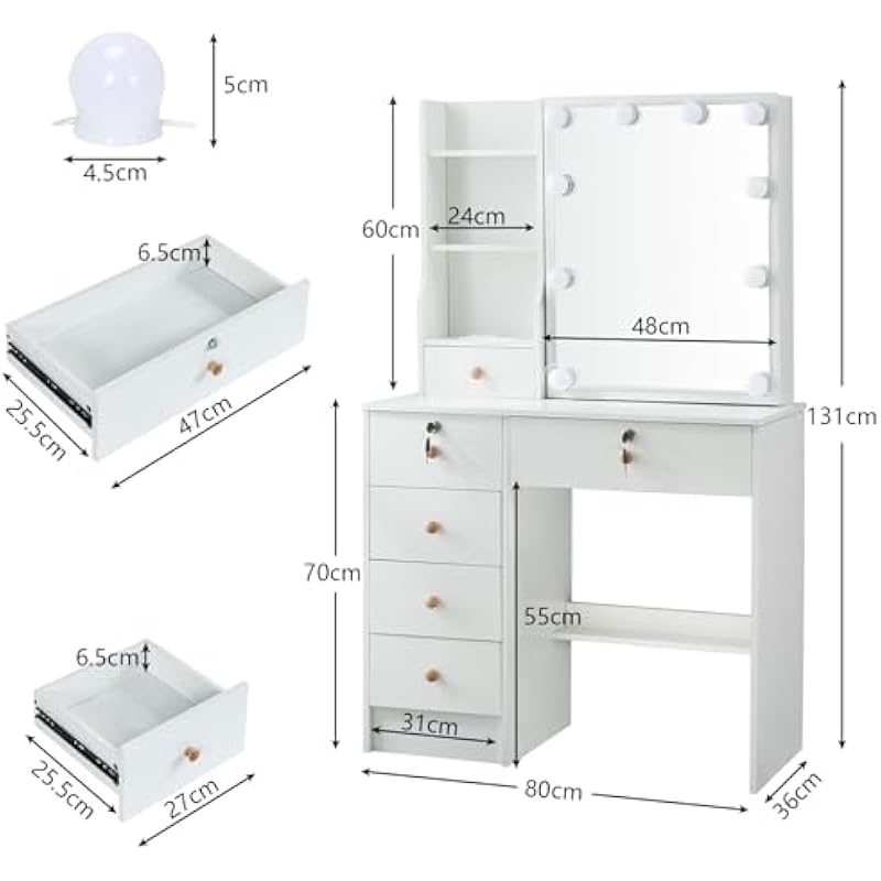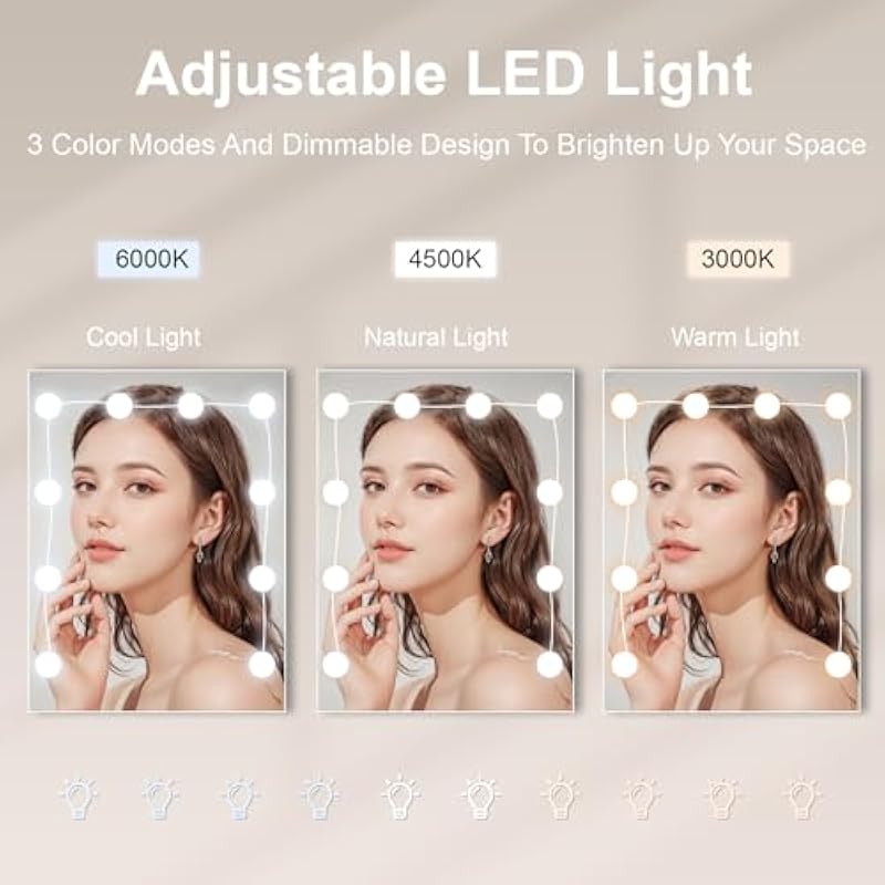 LED Lighted Vanity Vanity Makeup Mirror Cosmetic Table with Mirror 3 Colors Adjustable Brightness – M69