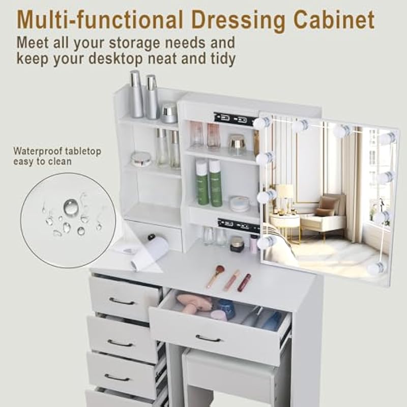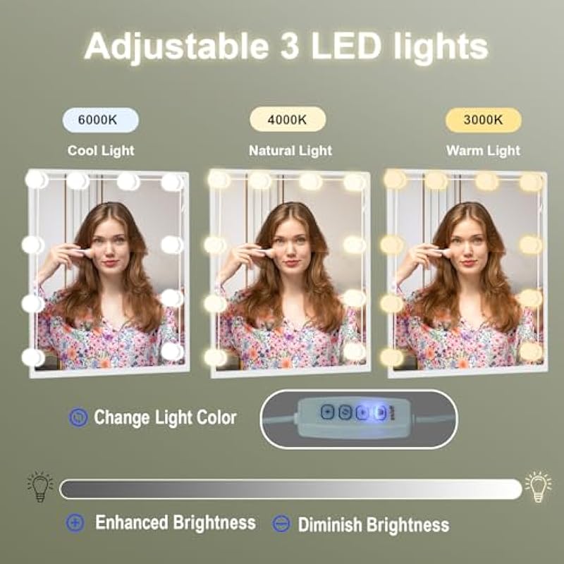 LED Lighted Vanity Vanity Makeup Mirror Cosmetic Table with Mirror 3 Colors Adjustable Brightness – M69