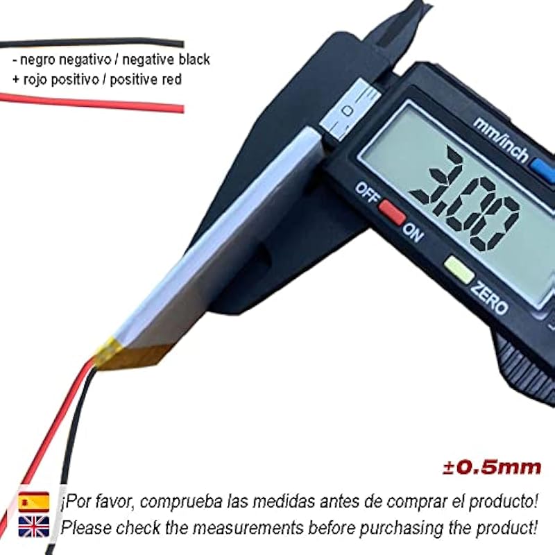- Specifications -> Battery Model: 301230 | Battery Size: 30.5x12x3 ±0.5mm | Rated Voltage: 3.7V | LiPo Power Battery (Lithium Ion Battery), 3.7V Lithium Polymer Rechargeable Battery | 1 Cell | No connector with PCM protection