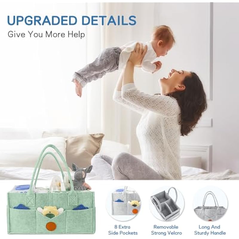 Maliton BeBe Organizer Basket, Baby Diaper Cart Organizer with Detachable Compartments, Newborn Gift-Brown with Lid