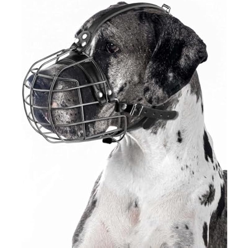 Metal Dog Muzzle with Leather Straps Pitbull Great Dane Rottweiler Safe Wire Basket Breathable Adjustable Fit for Large Dogs (Silver)