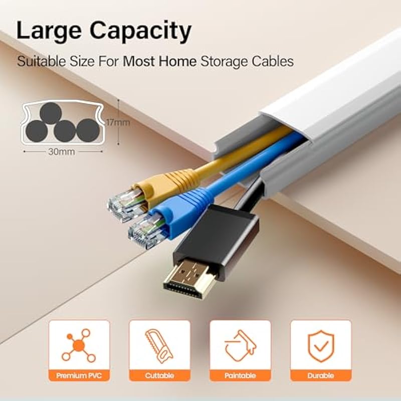- 【Cuttable and Paintable】:The gutters come pre-cut into 10 pieces and can be adjusted to your size. Plus, they are paintable to match the color of your wall. With the MUDEELA wall cable strip, you can easily hide wall cables and keep your space tidy