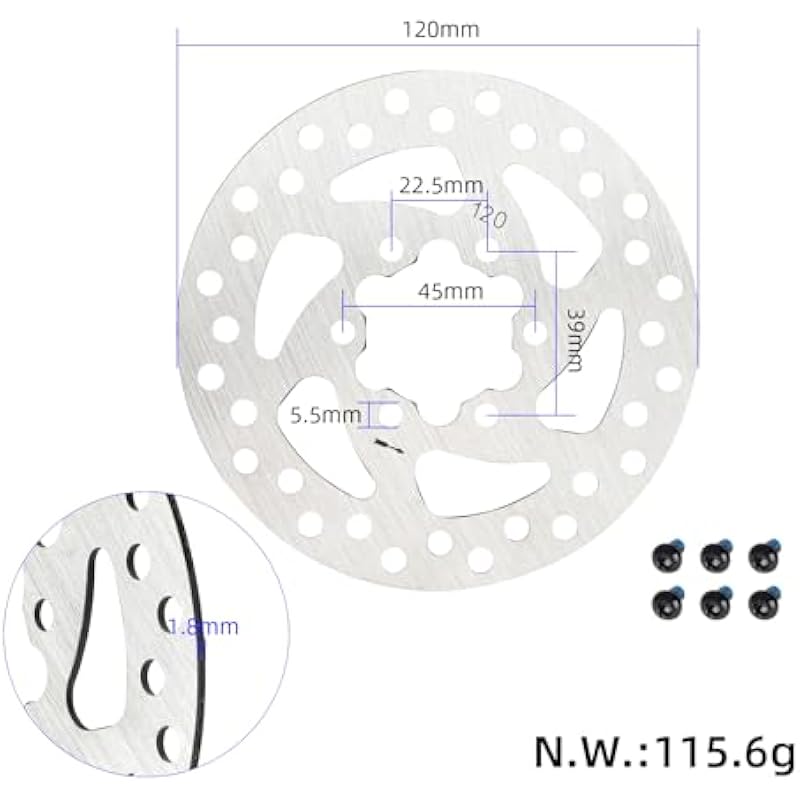 myBESTscooter – 120mm Disc with 6 Screw Holes for Brake Unit for Segway Ninebot Electric Scooter F20, F25, F30, F40, F Series