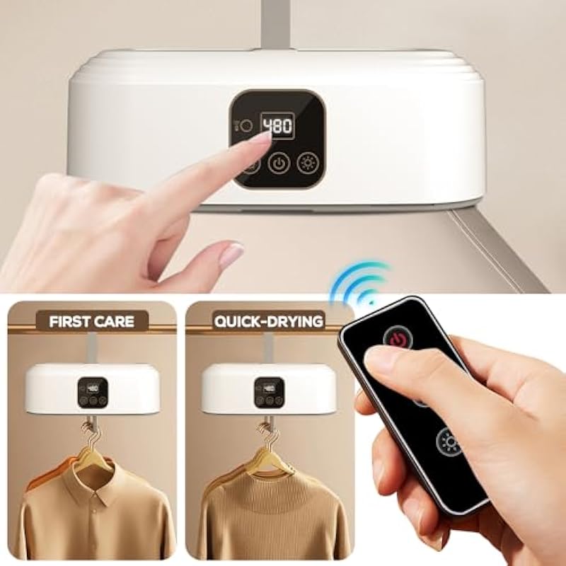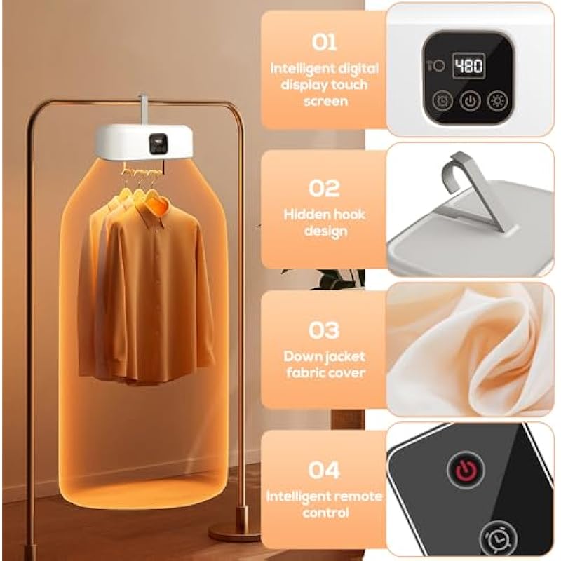 - [Widely Used] Mini portable dryer not only dries clothes, but also has a UV sterilization function, which can remove bacteria and odor from clothes; 1~8 hours smart timer, automatic disconnect countdown; For different clothes, different drying modes can be used, which is very suitable for hanging on the balcony of the living room, bedroom closet and other places of use.