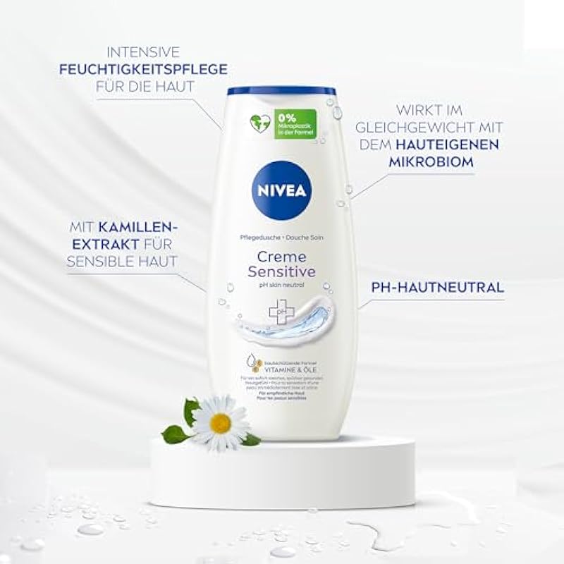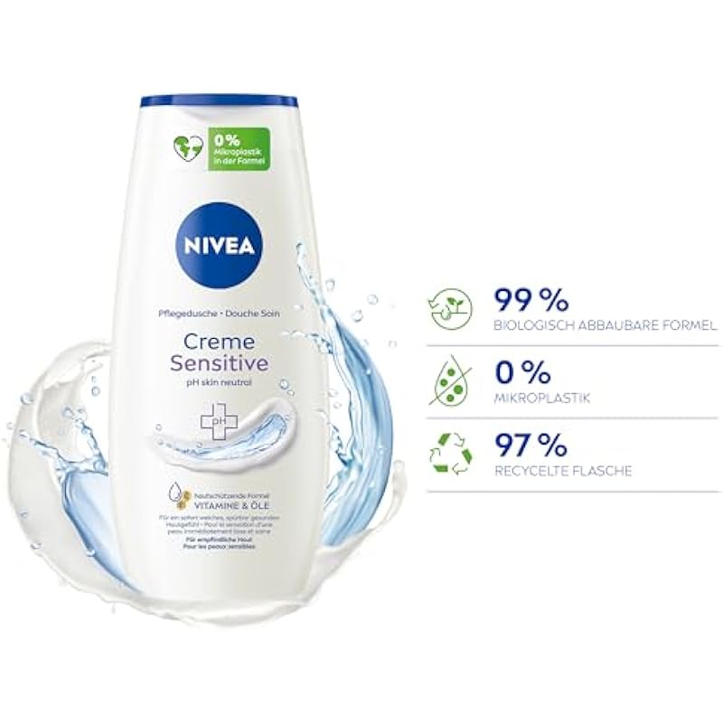 - Contents and details: NIVEA Creme Sensitive Shower Gel 250 ml, Skin Care for Sensitive Skin with Valuable Oils and Vitamins, Item Number 80825