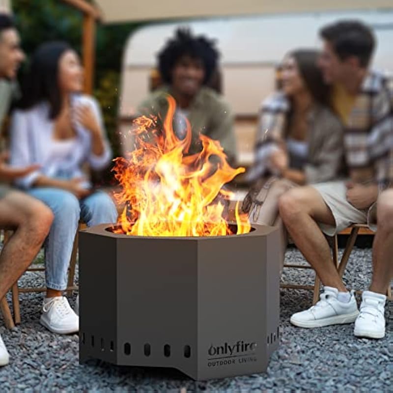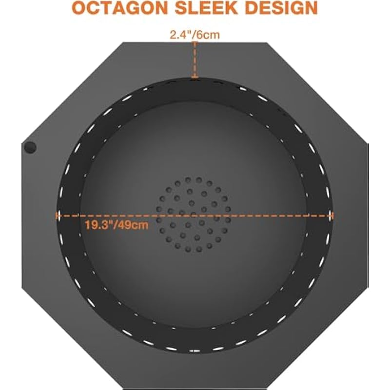 Onlyfire Φ66cm Smokeless Fire Pit, Portable Iron Firewood Fire Pit for Outdoor Fire Pits with Removable Ash Container for Garden Patio Party, Octagonal, Black