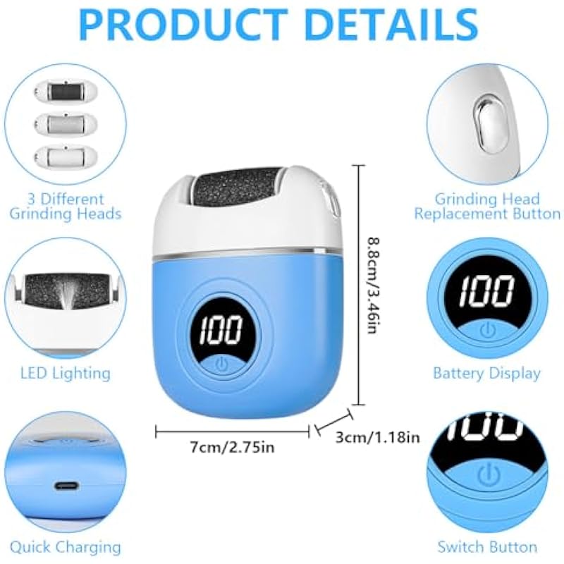 - 【3 Types of Polishing Heads Replacement】Our callus remover is equipped with three replaceable quartz polishing heads: coarse, medium and fine. Callus remover feet can be adjusted flexibly according to different parts of the foot. Use these polishing heads to target toes, heels, sides and calluses on the soles of the feet, to meet different needs and provide a complete and comprehensive foot care program