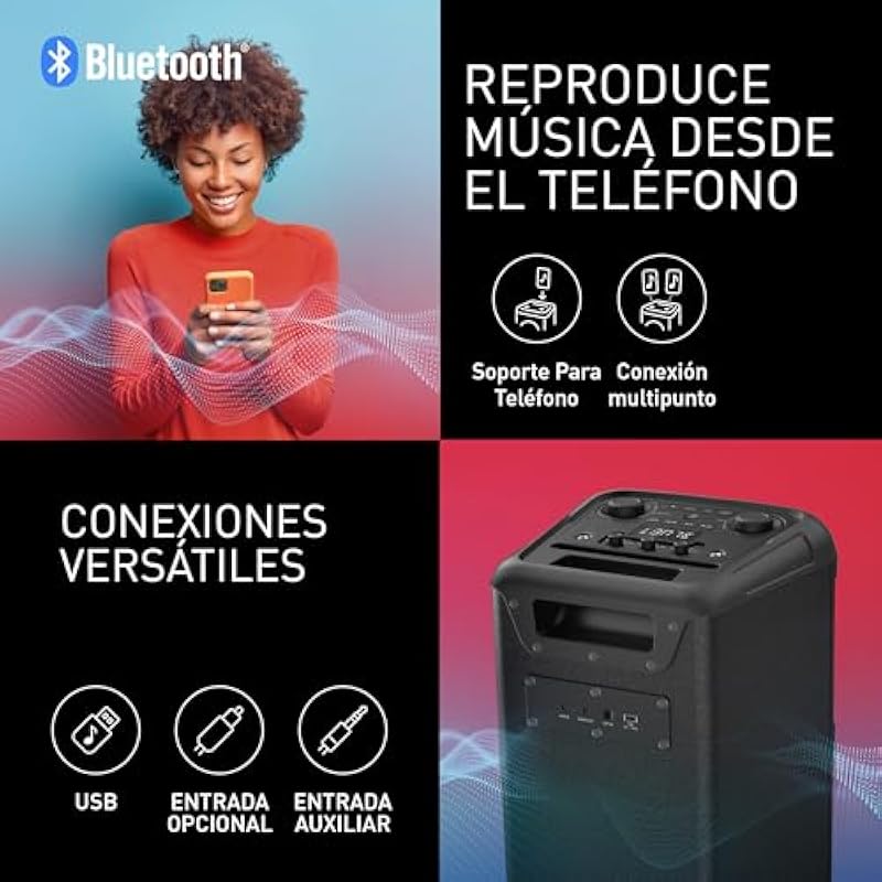 Panasonic SC-BMAX10E-K Portable Party Speaker with Bluetooth, Built-in Lights, 150 W, USB, Optical Input for TV, Guitar Inputs and Microphone for Karaoke, Black
