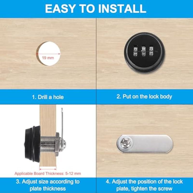 - Utility: A cabinet combination cam lock is used for keyless applications in lockers, doors, cabinets, drawers, cupboards, mailboxes, locks, and office file cabinet locks, and is excellent for protecting important things.