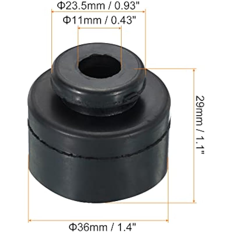 - Color: Black; Material: Rubber; Inner Diameter: 11mm / 0.43 inch; Total Size: 36 x 29mm / 1.4 x 1.1 inch(OD*H); Package List: 4 x Feet Pads