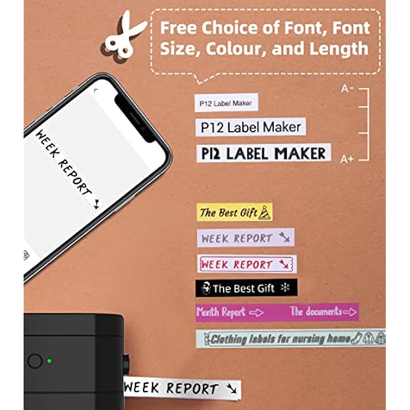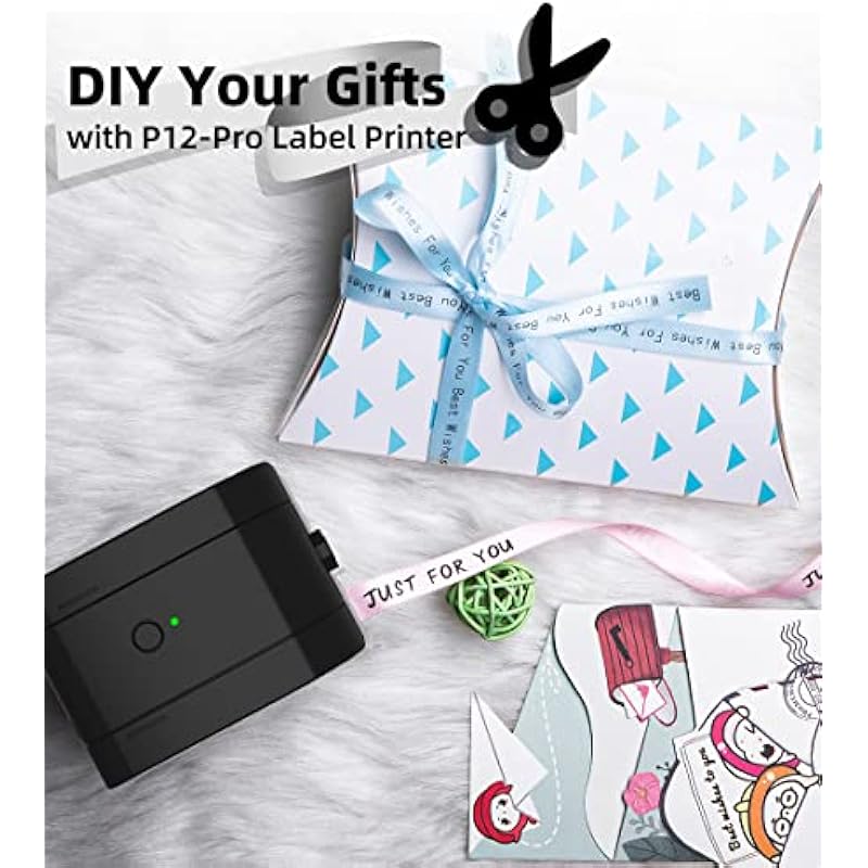 Phomemo P12 Pro Portable Bluetooth Label Maker with Label Tape, USB Rechargeable Thermal Printer for Home and Office, Portable Label Printer for Android and iOS