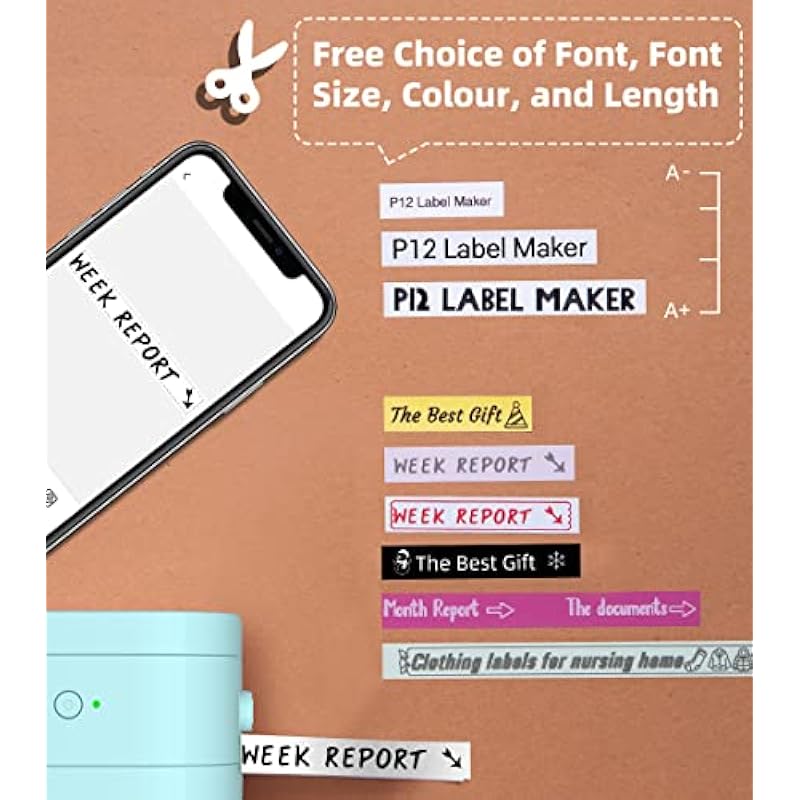 Phomemo P12 Pro Portable Bluetooth Label Maker with Label Tape, USB Rechargeable Thermal Printer for Home and Office, Portable Label Printer for Android and iOS