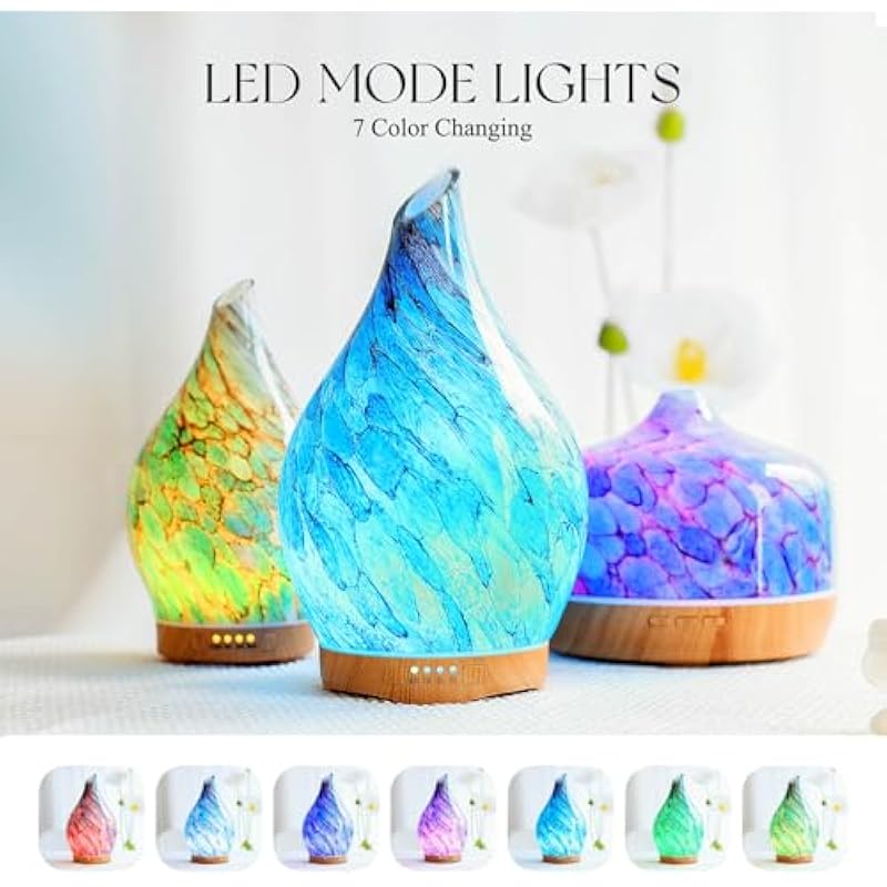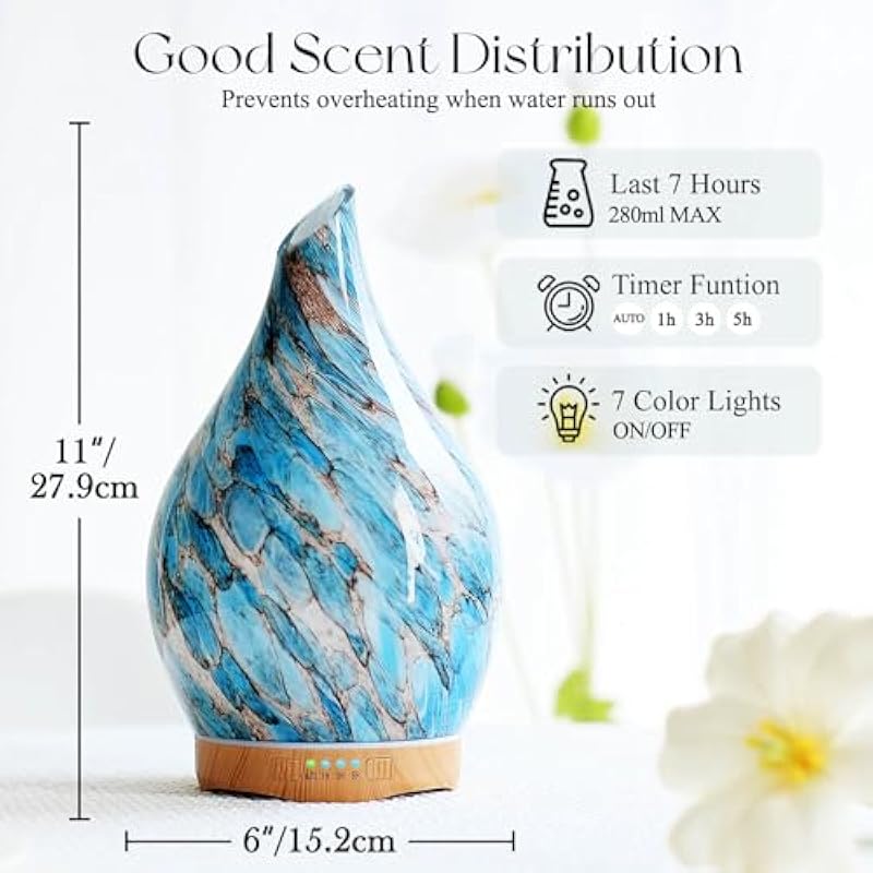 - UNIQUE ART DECORATIVE DESIGN – Our 280ml glass essential oil diffuser has an elegant starry pattern glass cover and wood grain decorative base. It is very suitable for your bedroom, living room, children’s room, study room, office, and yoga room.