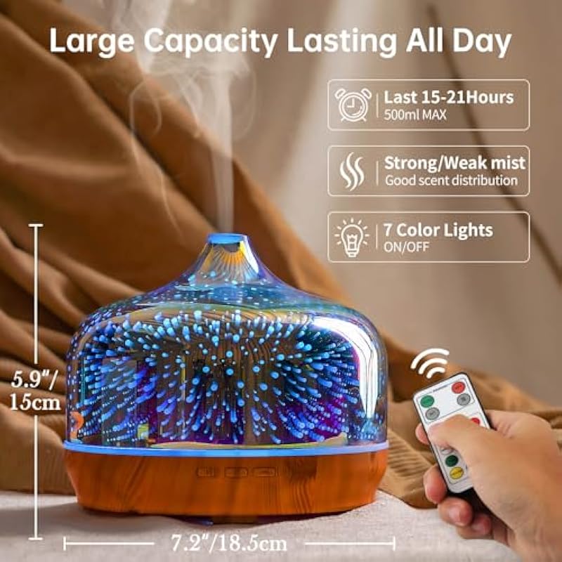 - REMOTE CONTROL – You could be easily change the light color and mist when the oil diffuser is away from your bed.The remote’s max reading range is 65ft.