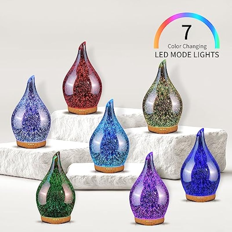 - HIGH QUALITY AND SAFETY – BPA free material with hand-blown glass globe.After you drop several essential oils that will release cool mist to fill everywhere.